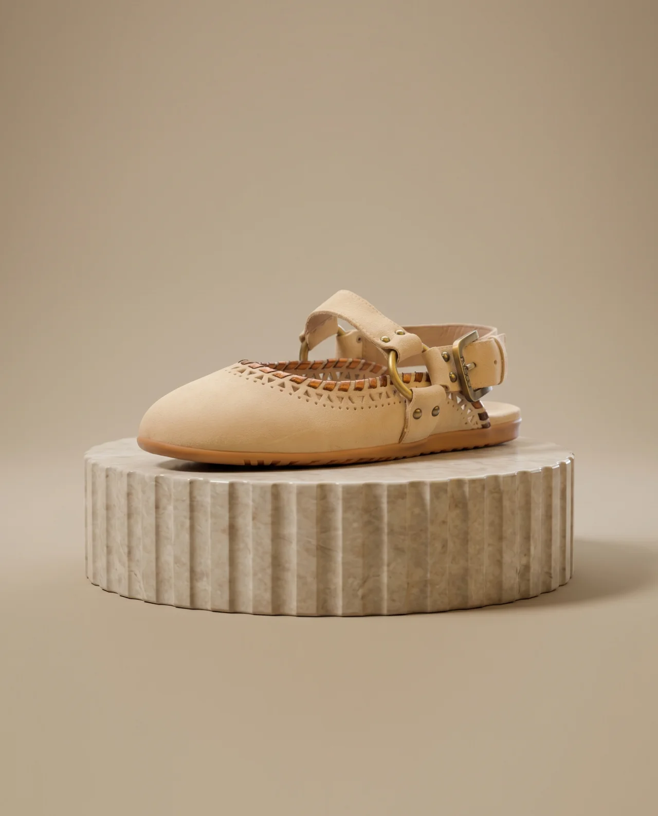 Highlights: Geometrische Lochmuster, verstellbarer Riemen, handgenähte Kanten