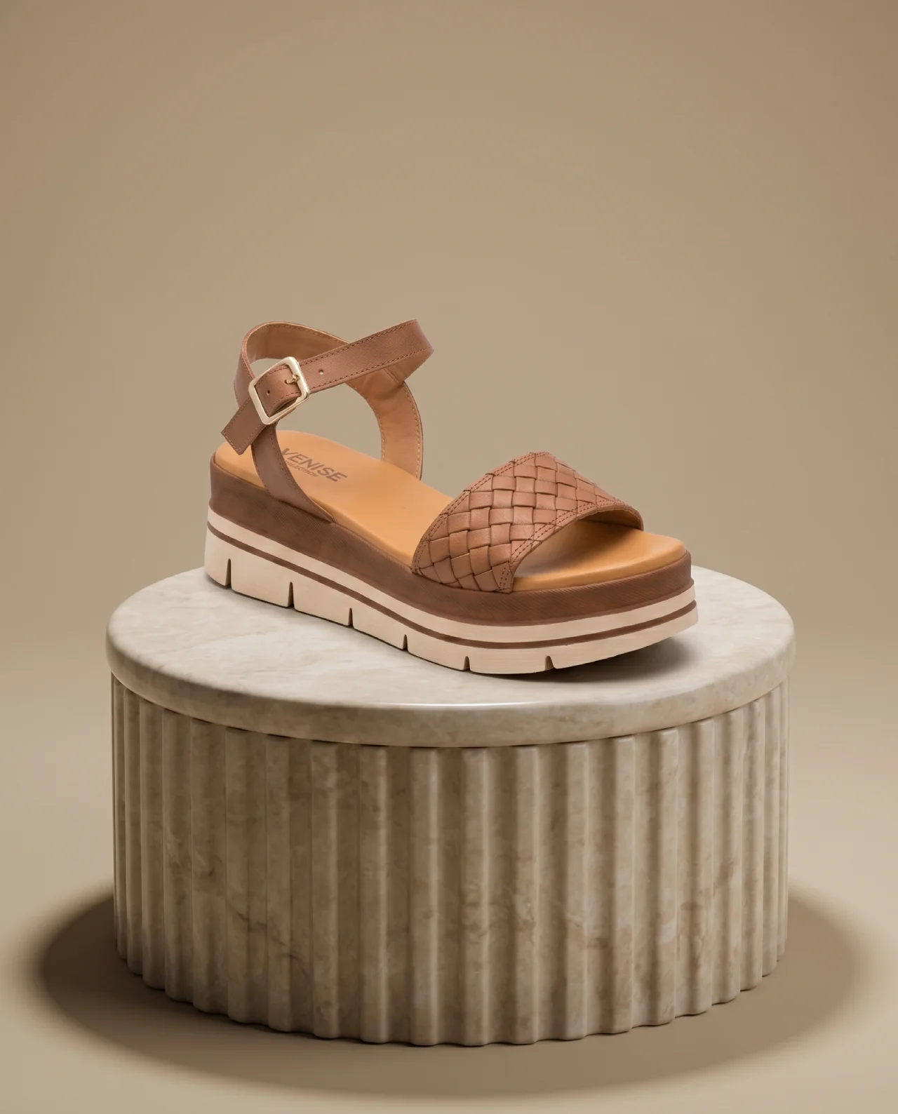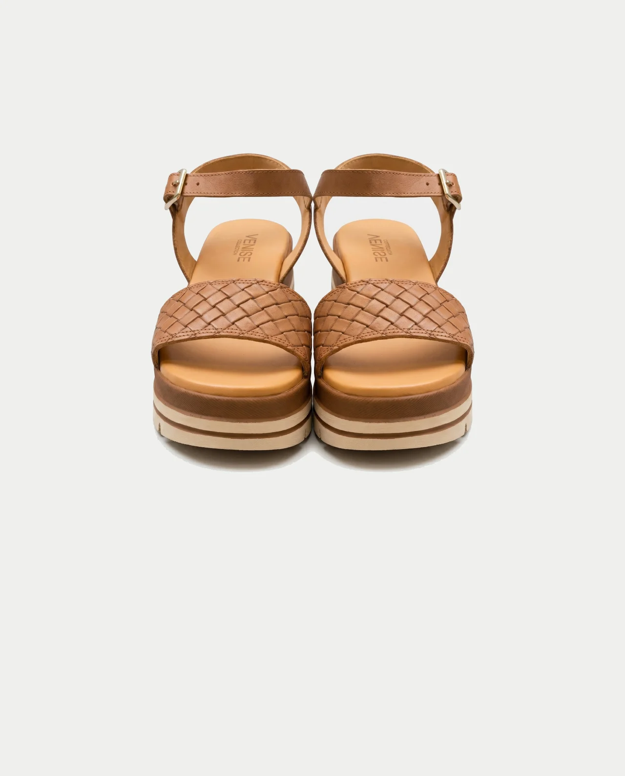 Camina con distinción y confort con las sandalias de plataforma INTRECCIO CUOIO de Venise Collection. Fabricadas artesanalmente en Italia con cuero natural de primera calidad, estas sandalias destacan por su tira delantera tejida a mano (Intreccio) que refleja la esencia del diseño mediterráneo. La suela de plataforma multicapa y la plantilla de piel acolchada garantizan una pisada suave y estable durante todo el día. Su cierre de hebilla dorada ajustable al tobillo proporciona seguridad y un toque de elegancia clásica para tus outfits de verano.