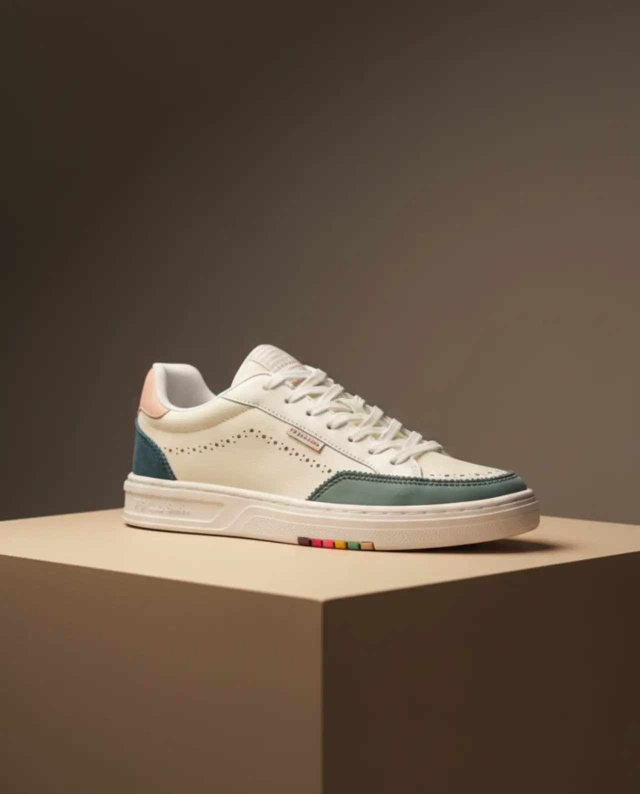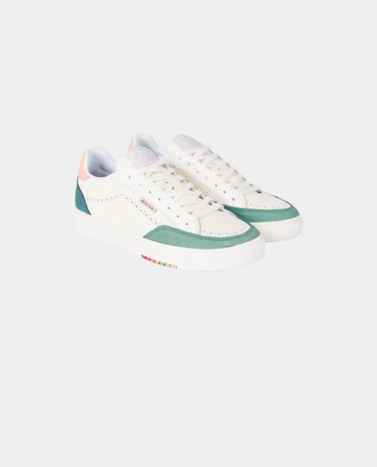 Les baskets Hillstar pour femme allient élégance contemporaine et confort grâce à leur tige en cuir blanc haut de gamme, rehaussée de détails pétrole sur la pointe et le talon.