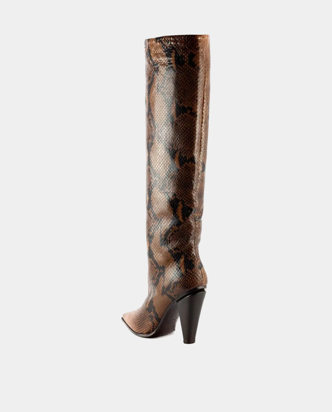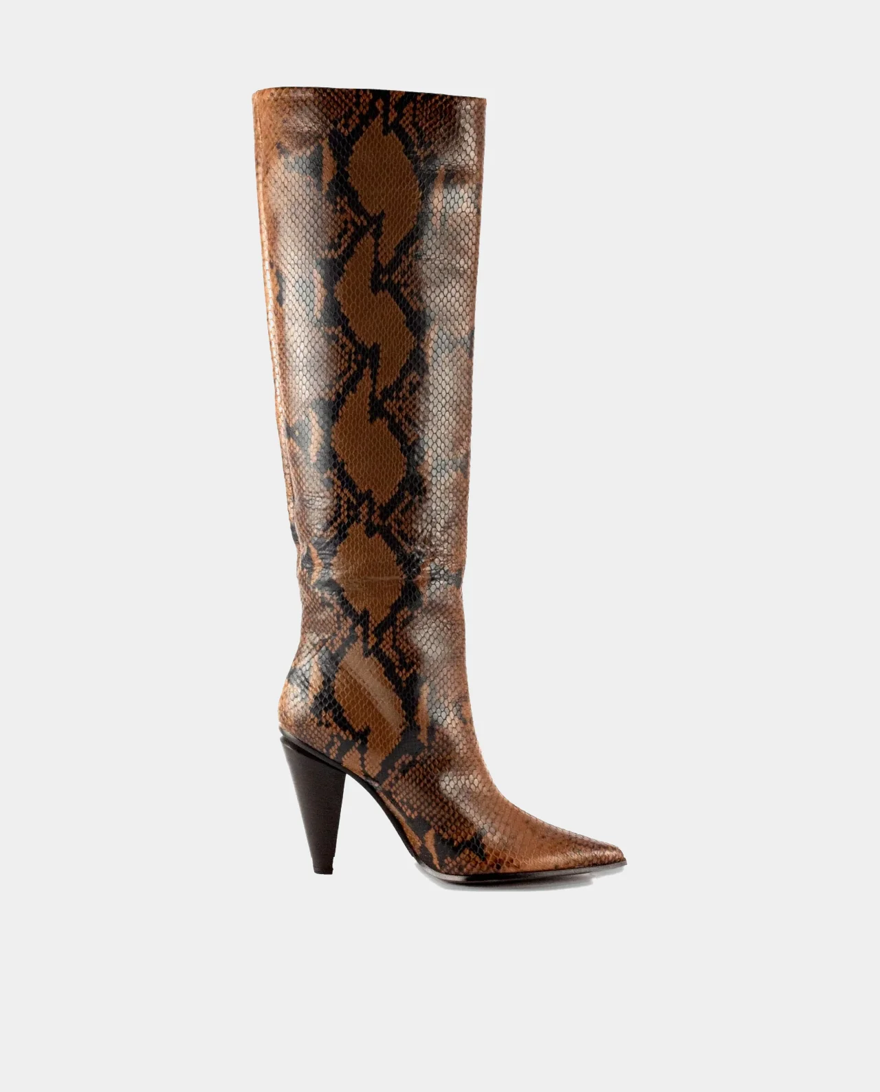 Sortez avec élégance grâce à Bellanova, des bottines pour femmes élégantes avec un bout pointu et un motif chic effet serpent. Fabriquées en cuir italien de qualité supérieure, ces bottes assurent un confort maximal avec une doublure et une semelle entièrement en cuir.