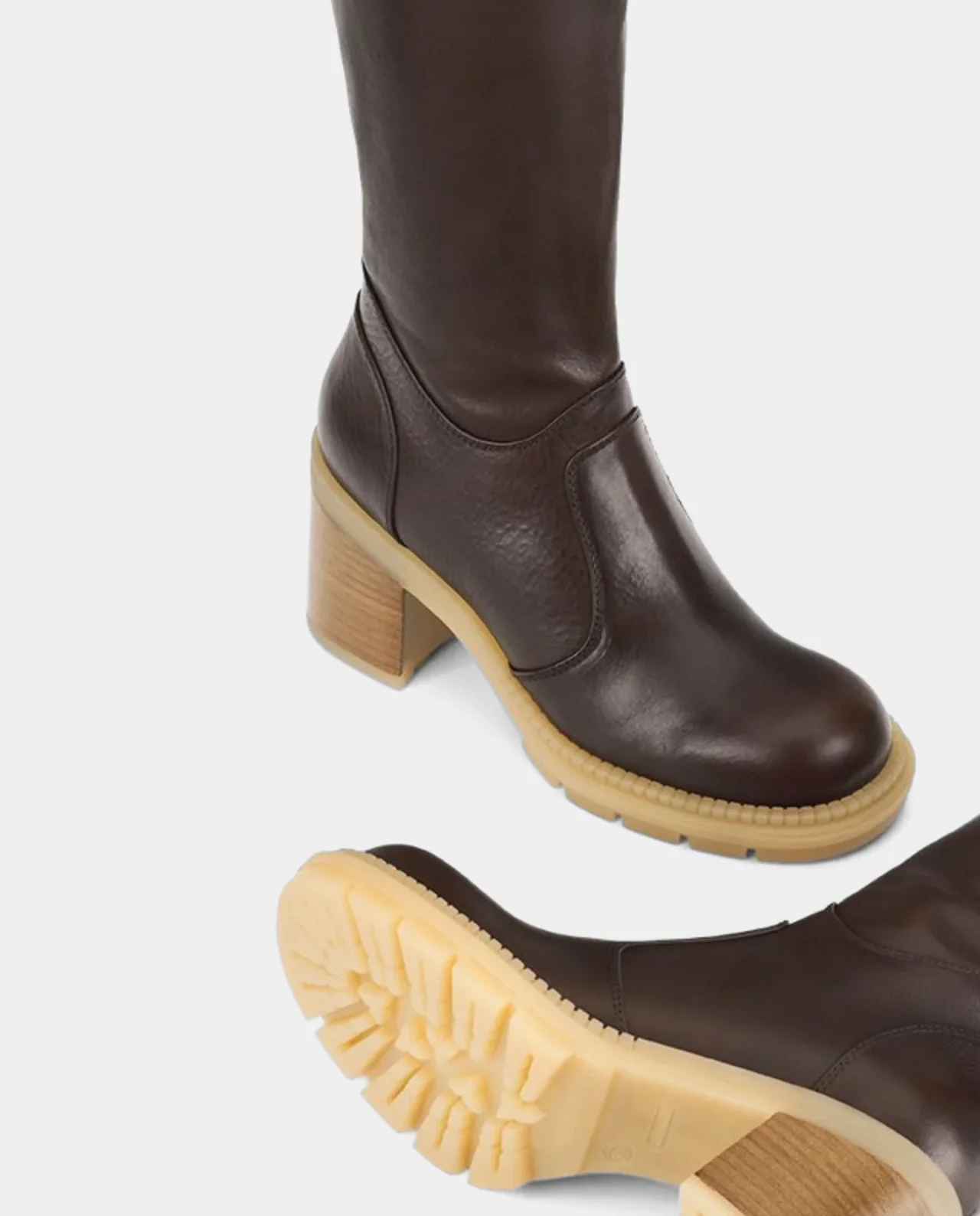 Entrez dans l’élégance audacieuse avec ces bottines en cuir à semelle épaisse. Dotées d’une semelle crantée et d’un talon de 8 cm recouvert de cuir, elles allient design moderne et stabilité tout au long de la journée. Les inserts élastiques latéraux et la languette arrière assurent un port sans effort et un confort optimal.