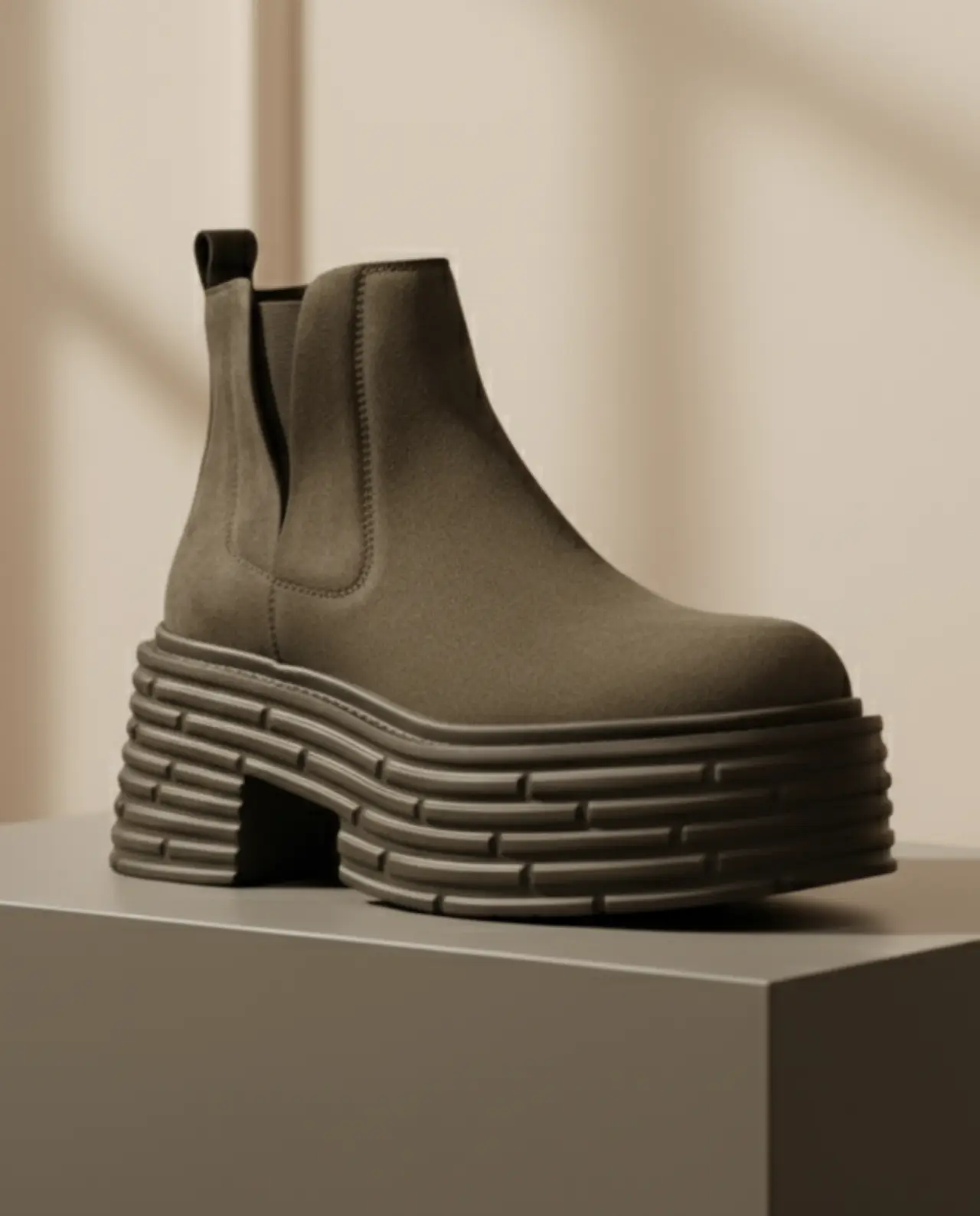 Une semelle intérieure respirante en charbon actif assure le confort, tandis que la plateforme et le talon offrent une élévation subtile sans compromettre la stabilité. Conçues et fabriquées en Italie avec expertise.