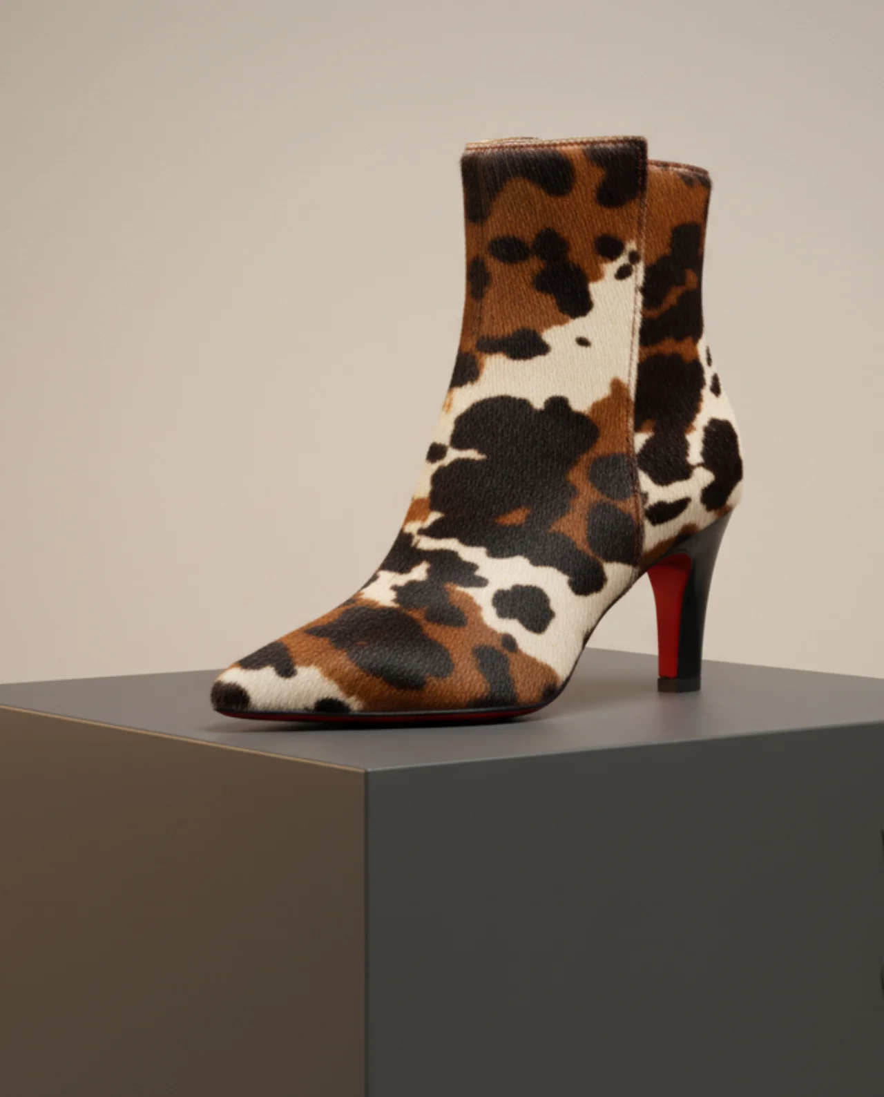 Avec son magnifique motif imprimé vache marron et crème et son bout pointu élégant, elle apporte une élégance western moderne à votre garde-robe, idéale pour les tenues de jour comme de soirée. La conception à talon moyen assure le confort sans compromettre la sophistication.
