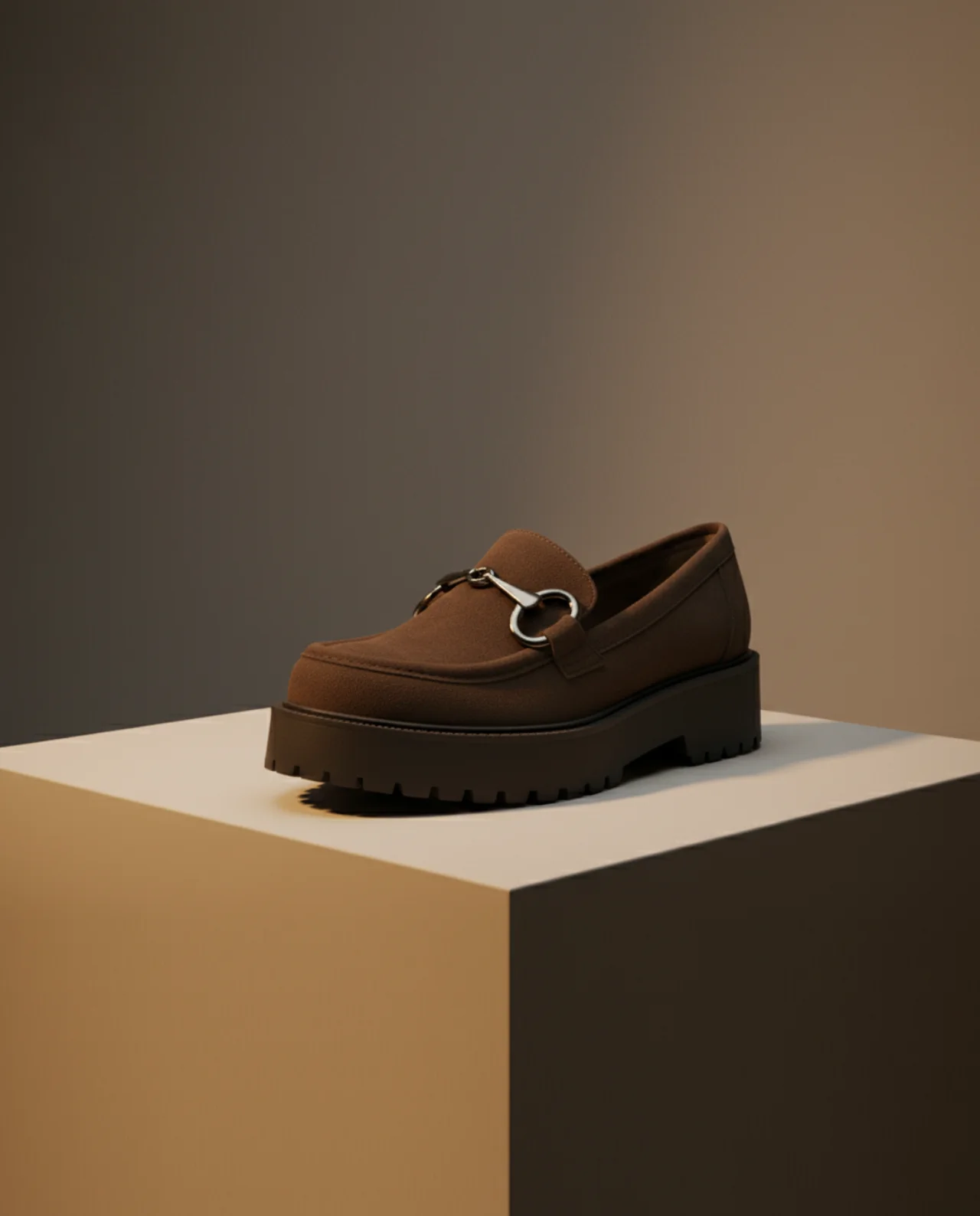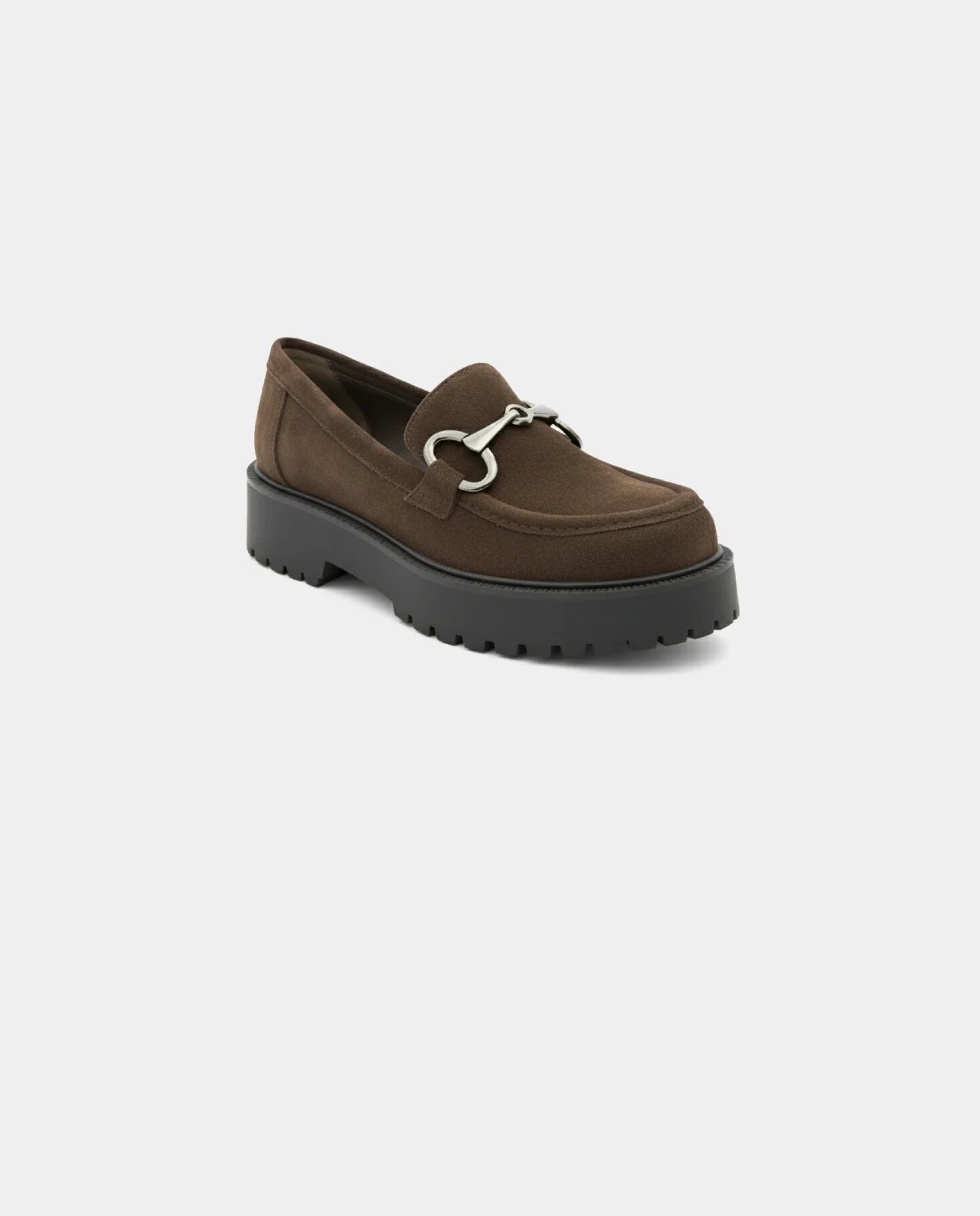 Entrez dans un confort supérieur avec MOKA, le mocassin à plateforme pour femmes confectionné en daim riche brun café. Sa semelle crantée audacieuse ajoute une hauteur assurée et une stabilité urbaine, parfait pour les journées qui passent des réunions matinales aux promenades de l’après-midi. Le bout arrondi et le détail métallique du passant apportent une sophistication intemporelle, tandis que la conception à enfiler assure un port sans effort.