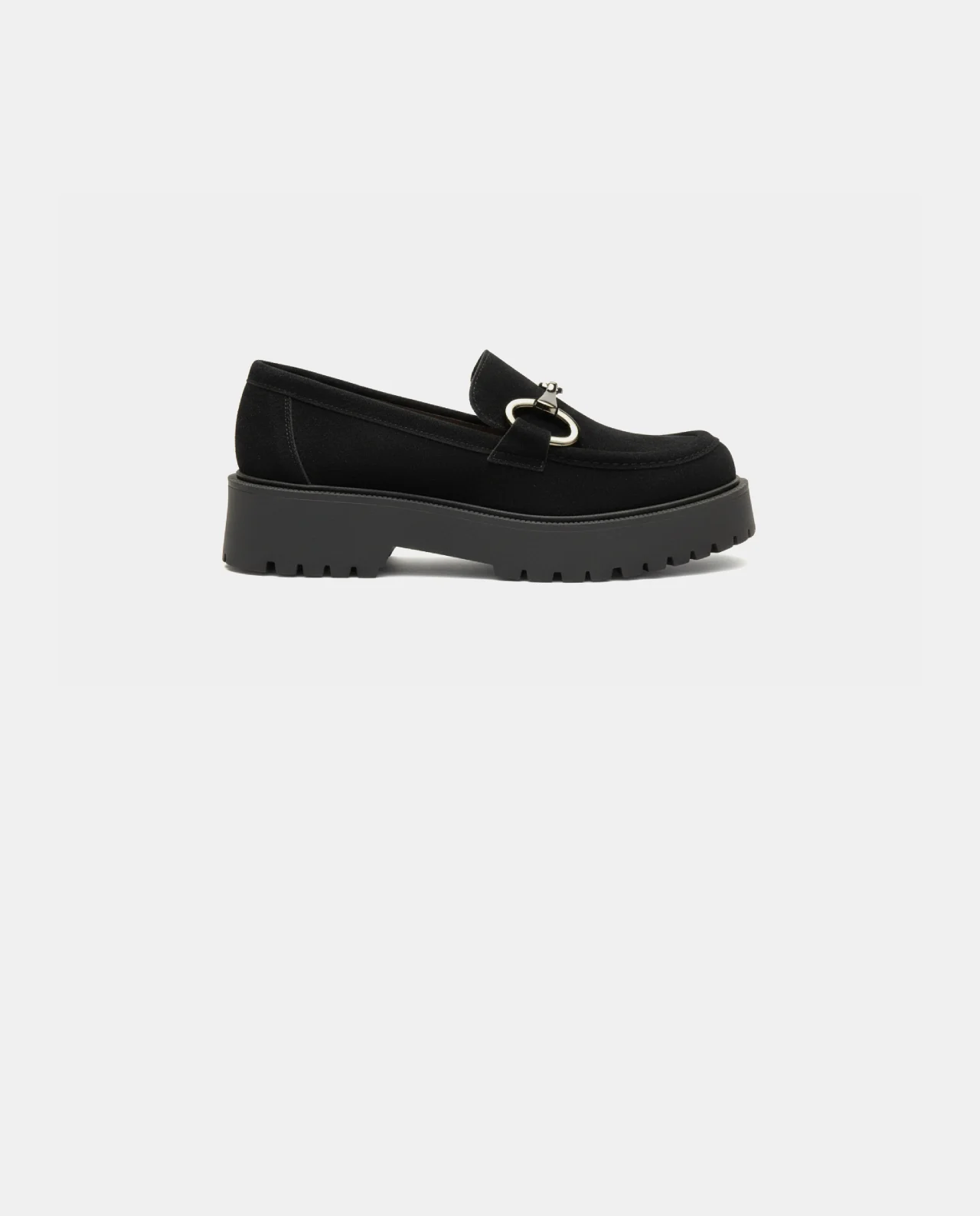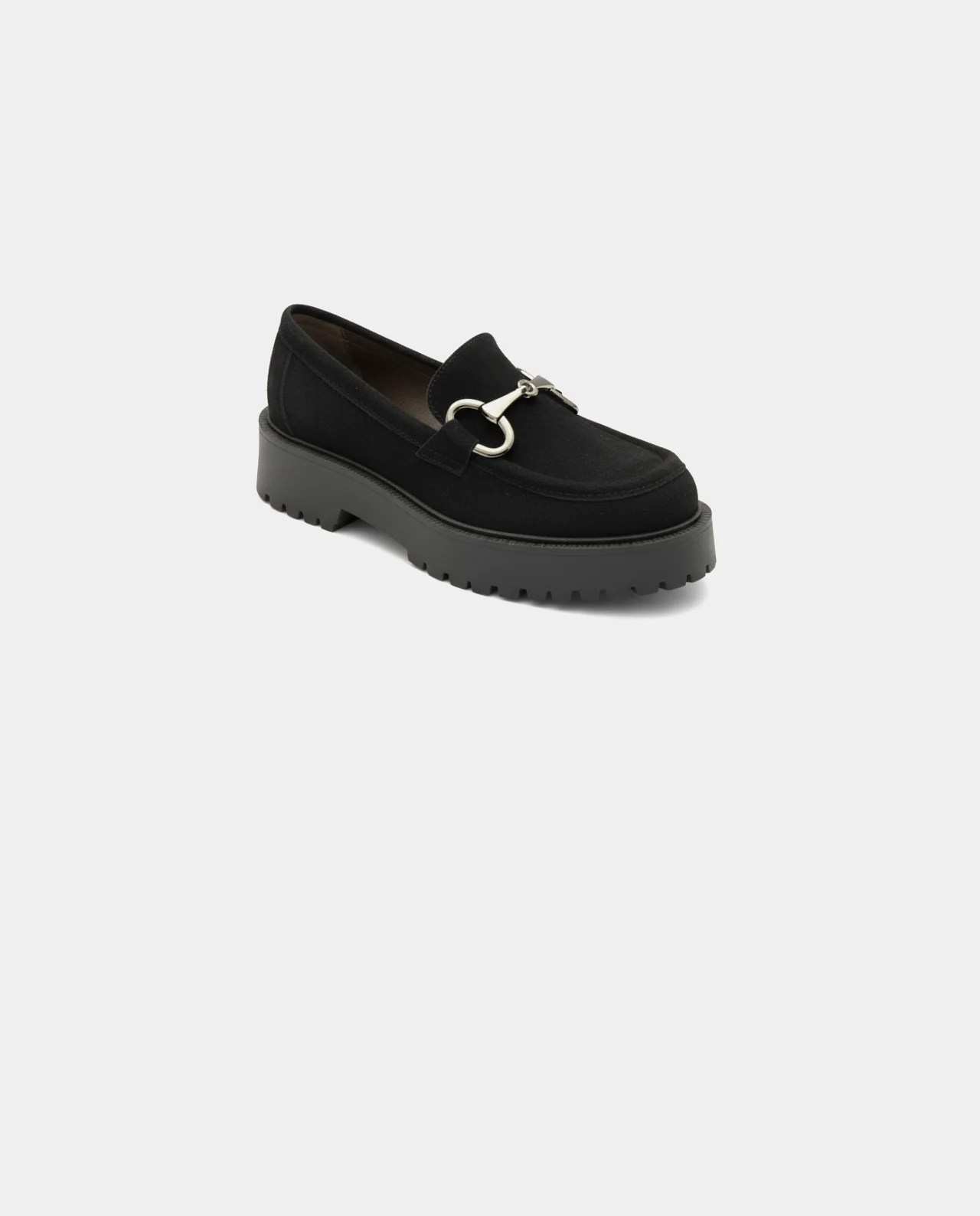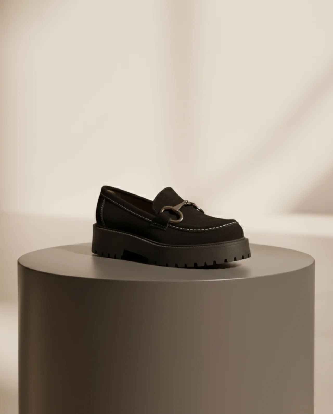 Sublimez votre style quotidien avec MOKA NOIR, le mocassin plateforme pour femmes confectionné en luxueux daim noir. Conçu avec une semelle crantée épaisse, il offre un équilibre parfait entre hauteur, confort et assurance. Que ce soit associé à un pantalon tailleur pour un look de bureau élégant ou à un jean court pour des promenades décontractées en ville, ces mocassins apportent une élégance raffinée et une énergie urbaine.