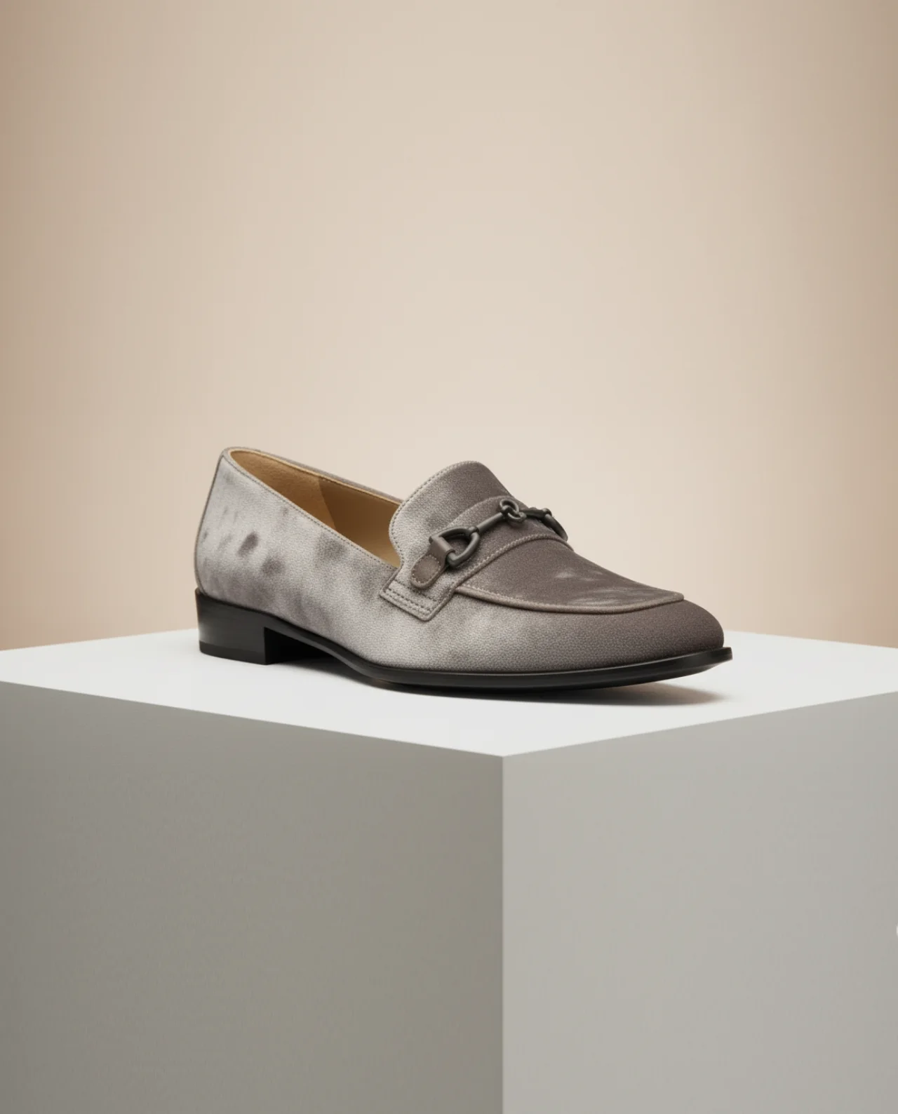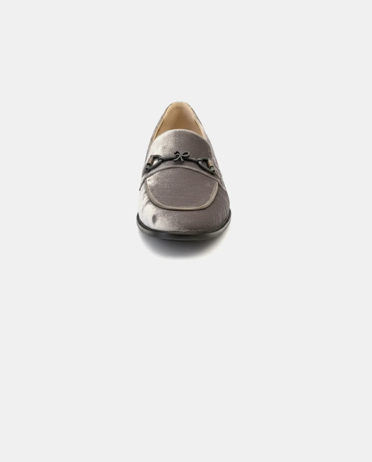 Les mocassins pour femmes AXEL de Roberto Festa allient une sophistication intemporelle à un confort moderne. Confectionnés en élégant velours gris et bordés de cuir d’agneau doux, ils présentent un talon subtil de 3 cm et un raffiné ornement mors doré gravé du logo RF. Leur silhouette effilée assure à la fois élégance et confort tout au long de la journée, parfaite pour le bureau ou les sorties en soirée.