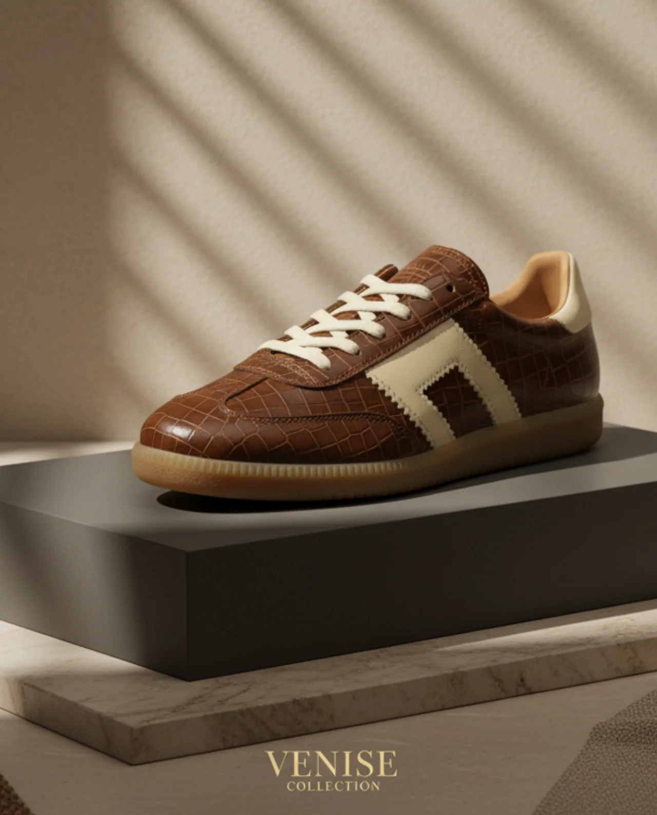 La teinte marron clair Rovere apporte une touche chaleureuse et sophistiquée à vos tenues quotidiennes. Avec sa fermeture à lacets et sa silhouette basse élégante, elle est idéale pour les tenues décontractées comme chics.