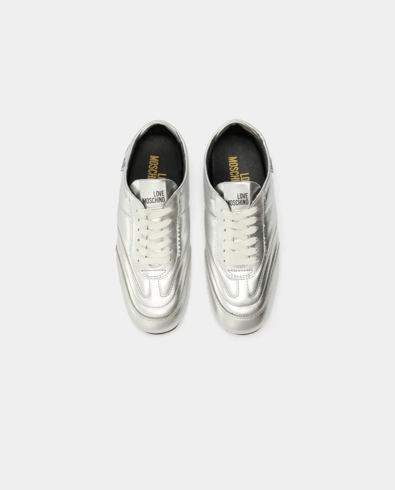 Love Moschino Low-Tops Women’s Silver Leather Sneakers